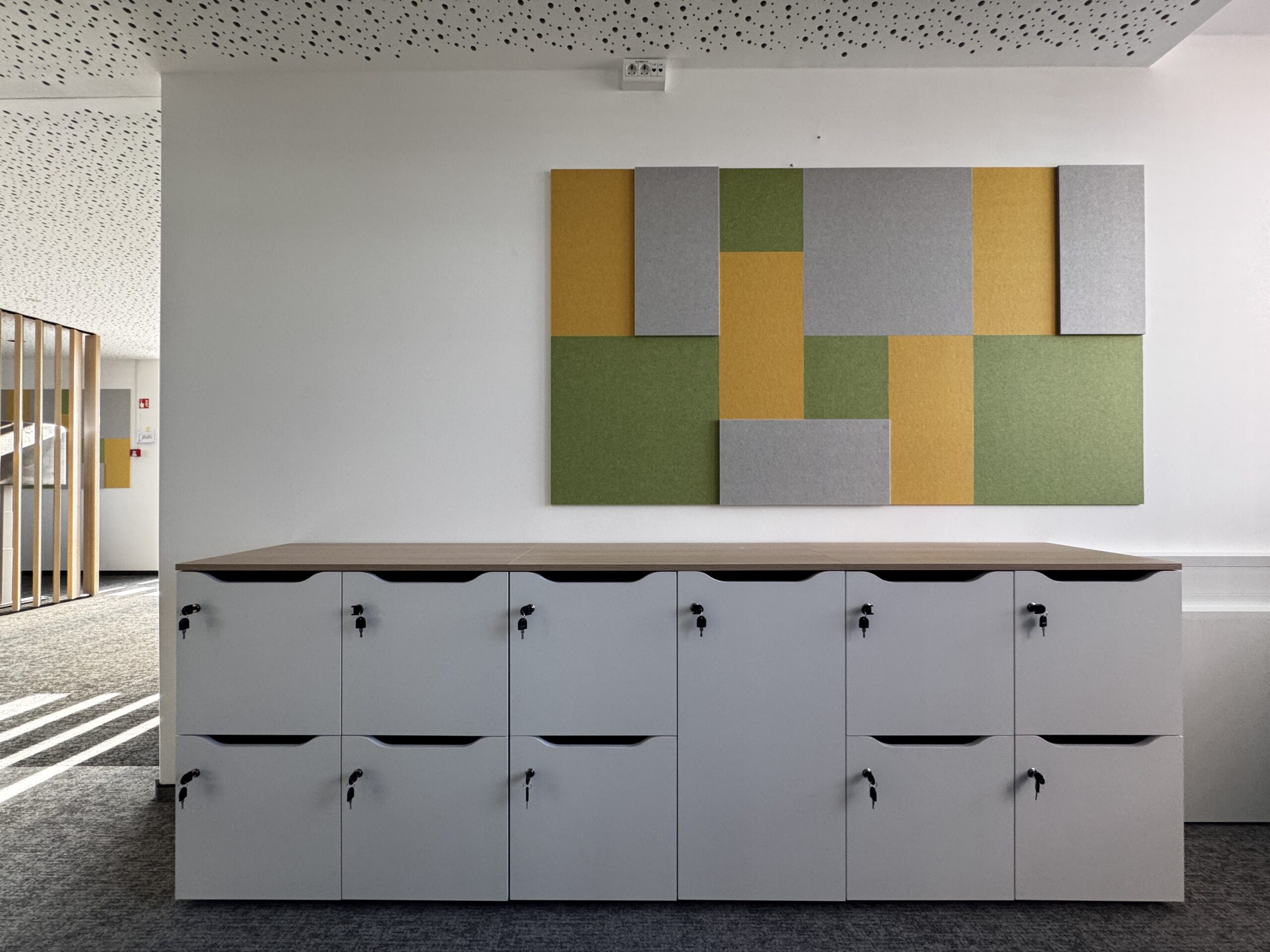 Eines der grossten Buromobelprojekte Sloweniens – 8 Etagen, 1.300 Arbeitsplatze fur NLB d.d. Montage der 2. und 3. Etage derzeit im Gange. Arbeitsplatze, Akustikpaneele, Holzlamellen-Trennwande und Glaswande – alles aus einer Hand.